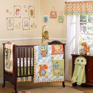 Who said dinosaurs are scary? The adorable dinos in this collection will help create a fun and cheerful nursery for your little paleontologist. An array of bright colors such as buttercup yellow, sky blue, lively orange, green and brown are used in a variety of textured fabrics and playful prints.
